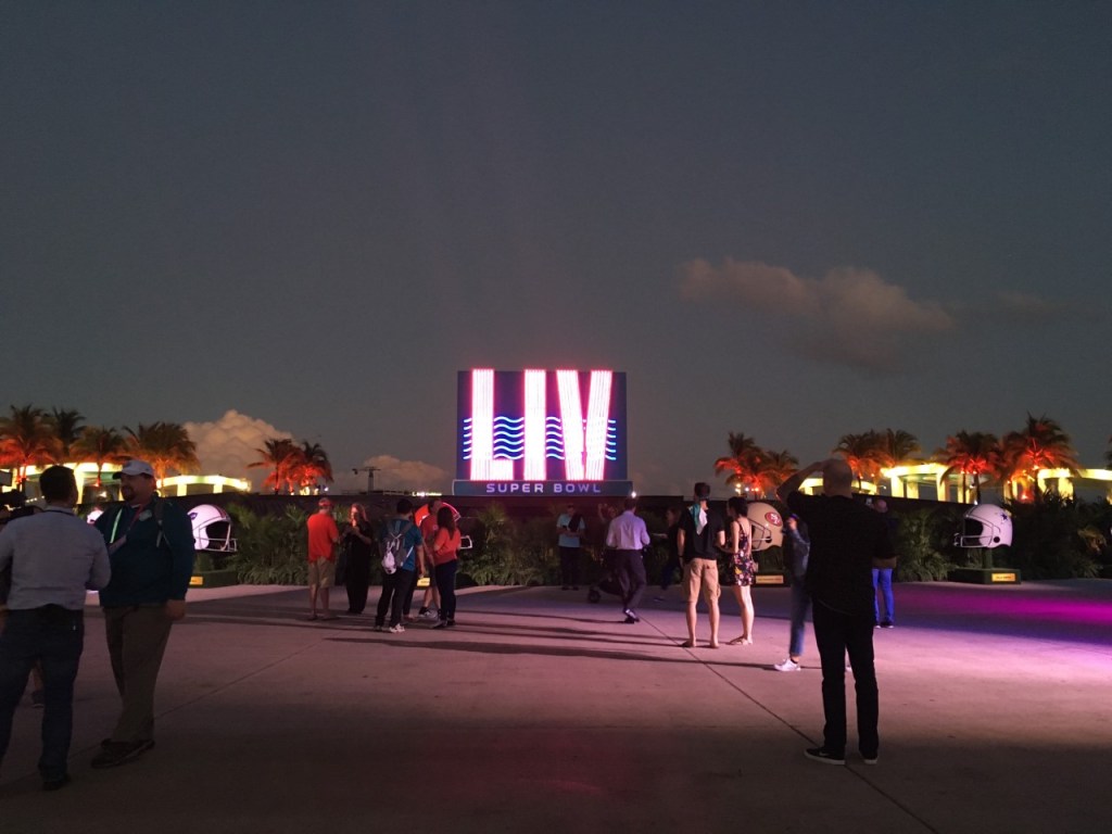 On Tuesday, we went to Bayfront Park to work at Super Bowl LIVE, an outdoor fan experience in the heart of Miami. This event was covered on the Super Bowl Host Committee’s Instagram account in the weeks leading up to the Super Bowl, and it featured various places for photo opportunities, food tents, live music, a large football field, and carnival games for kids. While this event was the main thing covered by the host committee on social media, I did not see as many individuals from the media making their way around the park. The majority of coverage I saw was at the Super Bowl Experience in the Miami Beach Convention Center.